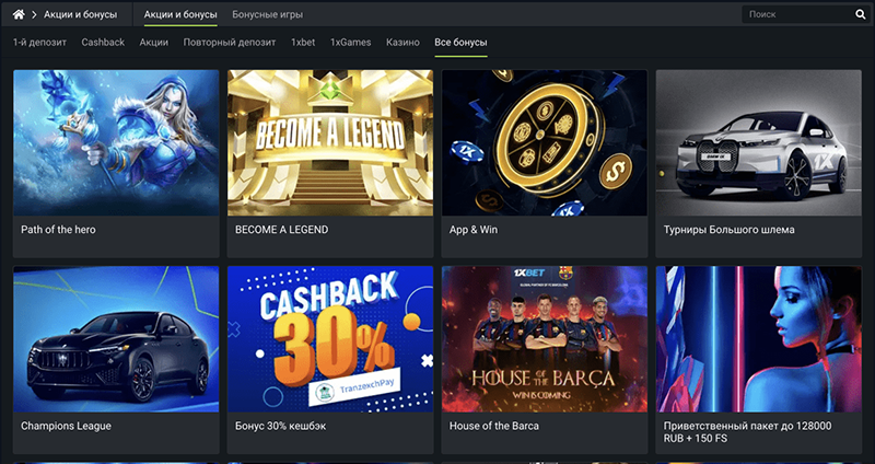 Промокод 1xBet – это не единственное выгодное предложение для игроков. В разделе «Акции» описаны все предложения и поощрения, которые игроки могут получить.